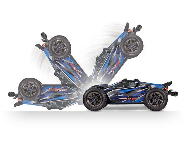 TRAXXAS Rustler 4x4 BRUSHLESS Ultimate VXL Blau ohne Akku Stadium Truck 2.4GHz (Link-fähig) ohne Akku und Ladegerät