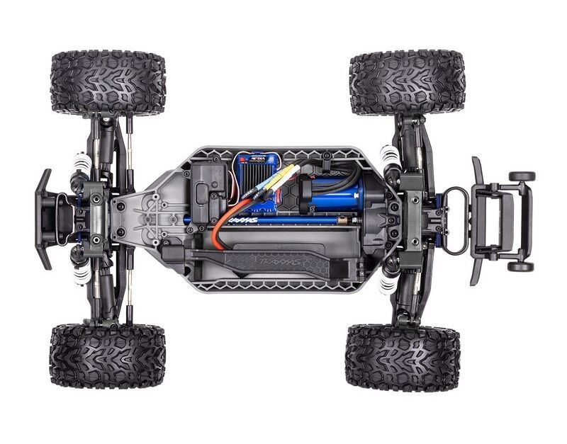 Der Rustler VXL 4x4 ist auf einem modularen Chassis aufgebaut. Mit dem Entfernen nur weniger Schrauben lassen sich die Vorder- und Hinterachse schnell und einfach demontieren. Die ölgefüllten Stoßdämpfer federn spielend hohe Sprünge ab und sorgen für sanftes Fahrverhalten Offroad.