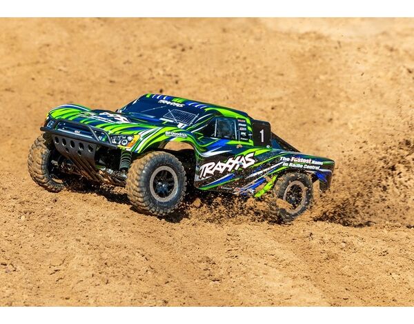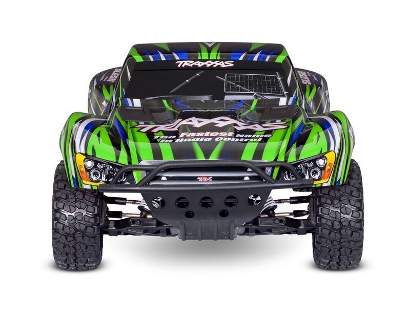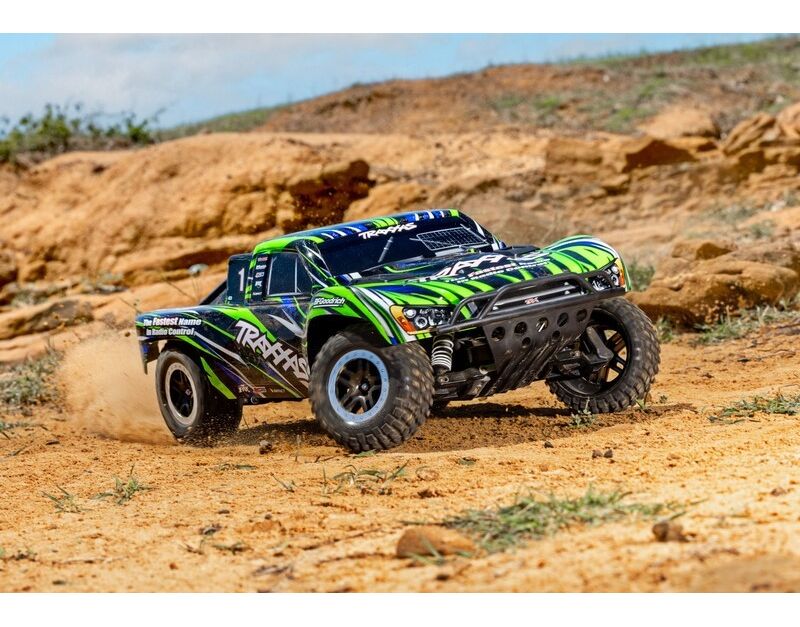 Der Traxxas Slash® versetzt Sie in intensivste Short-Course-Rennen, bei denen es Kotflügel an Kotflügel auf der Rennstrecke zur Sache geht. Das BL-2s™ Brushless-System des Slash liefert mühelose Leistung für den ganztägigen Spaß mit einer kraftvollen Beschleunigung und höheren Geschwindigkeiten. Die neuen Extreme Heavy-Duty Aufhängungsteile erlauben es dem Slash, selbst brutalste Belastungen locker wegzustecken. Der heckgetriebene Slash ist darauf ausgelegt, über Sprünge zu fliegen und mit Vollgas durch die Kurven zu rasen. Das vollständig einstellbare rennbereite Fahrwerk reproduziert die Dynamik der realen Welt für das authentischste Short-Course-Rennerlebnis, das möglich ist.