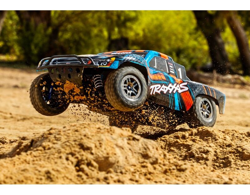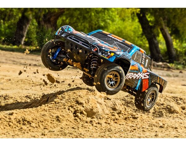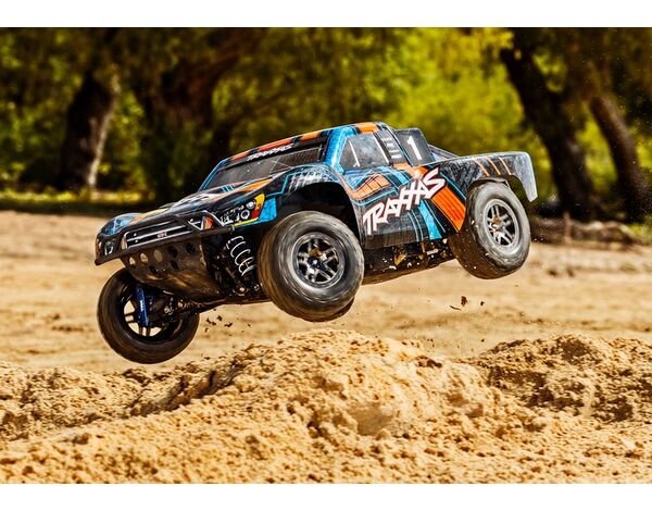 Experience the pinnacle of short course truck performance with the Slash 4X4 Ultimate. Fully loaded out of the box, the Slash Ultimate features brutal Velineon® brushless power and Traxxas Stability Management™ (TSM) with a high-speed metal gear servo. Carve corners like a pro thanks to the low-CG chassis, installed sway bars, and ultra-smooth blue PTFE-coated aluminum GTR shocks. Slash 4X4 Ultimate packs a full complement of aluminum hop-up parts and performance accessories for added strength and show-stopping looks. Slash 4X4 Ultimate arrives fully assembled with factory-installed telemetry sensors and a Wireless Link equipped TQi™ 2.4GHz radio system. Simply add the battery of your choice (sold separately) and you’re ready for intense tire-scorching action.