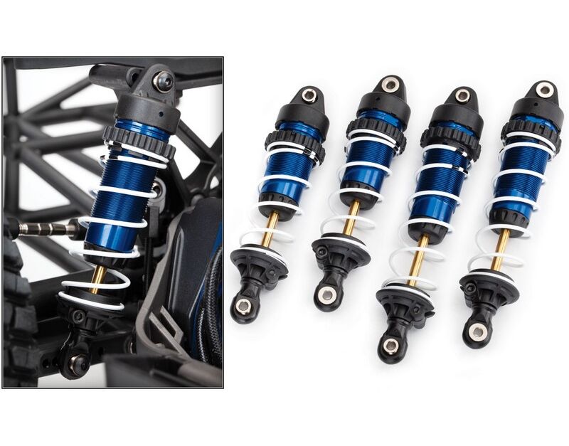 High-volume GTR shocks with adjustable-collar blue PTFE-coated aluminum bodies and TiN coated shafts