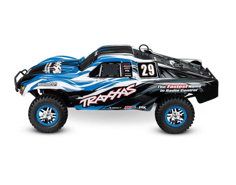 Der Slayer 4x4 ist dem echten 900PS Short Course Race Truck von Traxxas nachempfunden und bietet jedem die Möglichkeit die geladene Offroad Action zu Hause zu erleben – egal ob auf der Rennstrecke, auf Feldwegen oder im Garten.