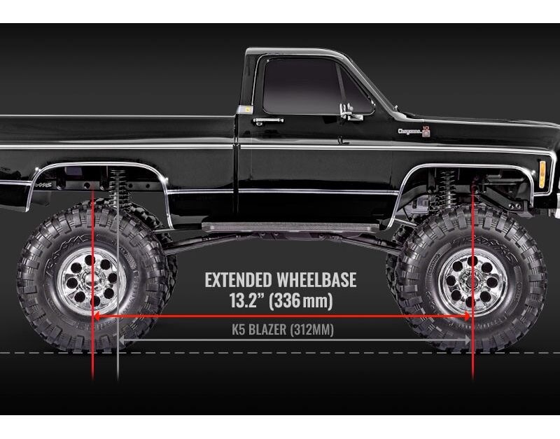 Dank des werkseitig installierten Long Arm Lift Kit und der übergroßen 2,2" Reifen ist die hochdetaillierte K10-Karosserie über 25mm größer als der Original TRX-4.