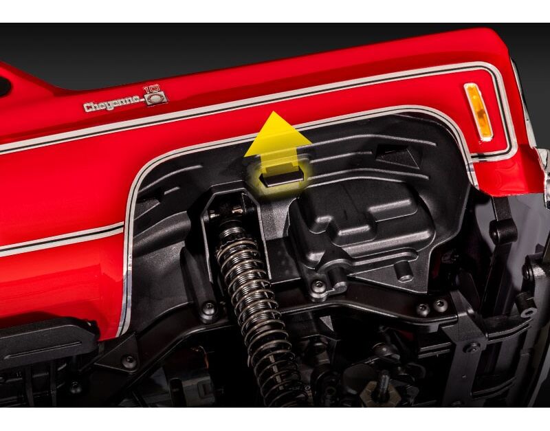 Dank des werkseitig installierten Long Arm Lift Kit und der übergroßen 2,2" Reifen ist die hochdetaillierte K10-Karosserie über 25mm größer als der Original TRX-4.