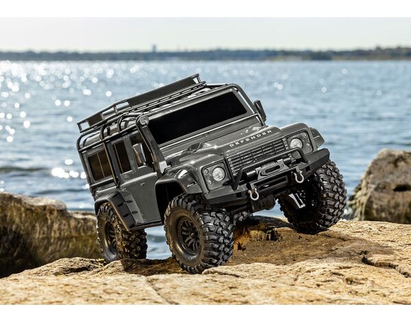 The TRX-4 Trail and Scale is being shown with the legendary Land Rover Defender body, complete with exciting scale details for an authentic 4-wheelin’ experience. We’ve included a functional spare wheel and tire, an off-road jack, and spare fuel canisters. Secure your trail gear in the included roof basket. There’s even a snorkel for taking the waterproof TRX-4 through creek crossings. The rugged bumpers provide clearance and protection and are equipped with recovery D-rings. The front bumper is designed to be compatible with many popular off-road accessories