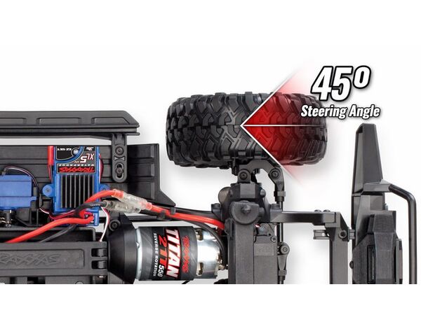Traditional crawlers sacrifice turning radius for traction. The TRX-4’s remote locking differentials disengage to take full advantage of its superior 45 degree steering angle. Once you clear the obstacle, re-engage the differentials for ultimate traction