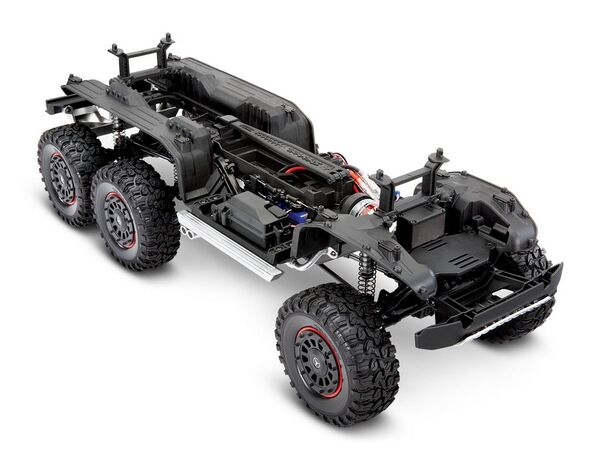 Traxxas exclusive portal axles lift the truck at the wheels for huge ground clearance under the axles. In order to achieve the same clearance with straight axles (and not get stuck), your tires would have to be over an inch taller than the TRX-6's tires. Straddling boulders with ease, the TRX-6 chassis definitely takes the path less travelled and simply leaves all the others behind.