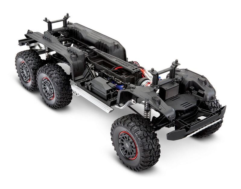 Designed exclusively for the TRX-6 Mercedes-Benz G 63 AMG 6x6, thick 1.5 mm steel frame rails are formed from one solid piece for maximum strength. Extra bracing and crossmembers provide exceptional torsional rigidity to resist chassis twist under load. Full inner fenders and accurately reproduced skidplates enhance the scale realism.