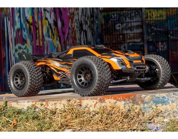 78086-4: X-RT 1/6 Orange scale 4WD brushless race truck. Fully assembled, Ready-To-Race®, with TQi™ 2.4GHz radio system, VXL-8s brushless power system, and ProGraphix® clipless body.
