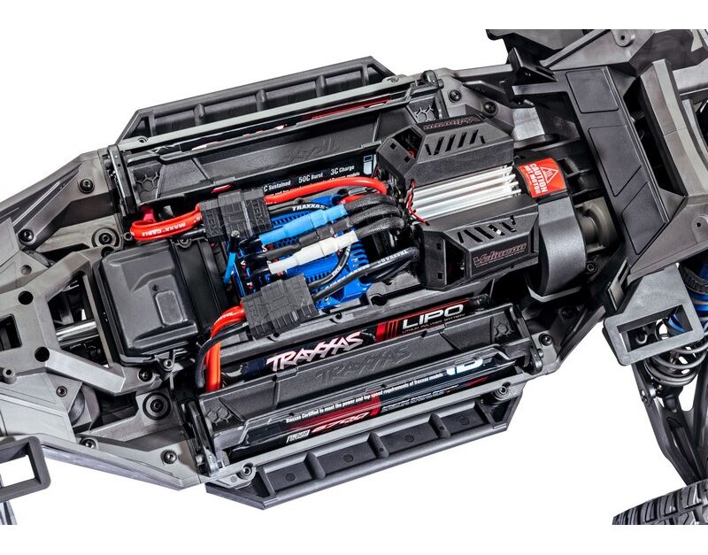 Traxxas recommends dual 4-Cell, 6700 mAh Power Cell LiPo batteries (part #2890X) or the Dual 4s Completer Pack (Part #2997).
