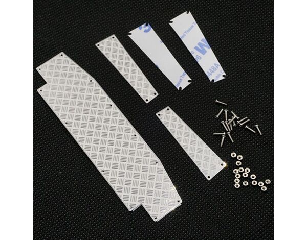 Add scale realism to your Traxxas TRX-4 body with these stainless steel Diamond plates, comes with double sided mounting tape cut to match the plates for easy installation.