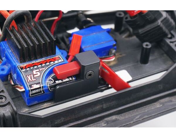 Hate taking off the body to switch your Traxxas esc on or off? Use this extension for the button for easy power up and down. The lever tucks neatly underneath the rock slider and will not come into contact with rocks for accidental power downs.