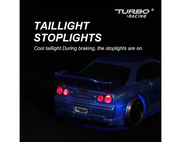 Der fest verbaute 55mAh Akku sorg für eine lange Fahrzeit und kann über den integrierten C-Stecker ganz einfach und bequem über eine Power Bank, einen Laptop oder ein Handyladegerät wieder aufgeladen werden. Gesteuert wird das Turbo Racing Modell über eine kleine und handliche 2,4Ghz Fernsteuerung.