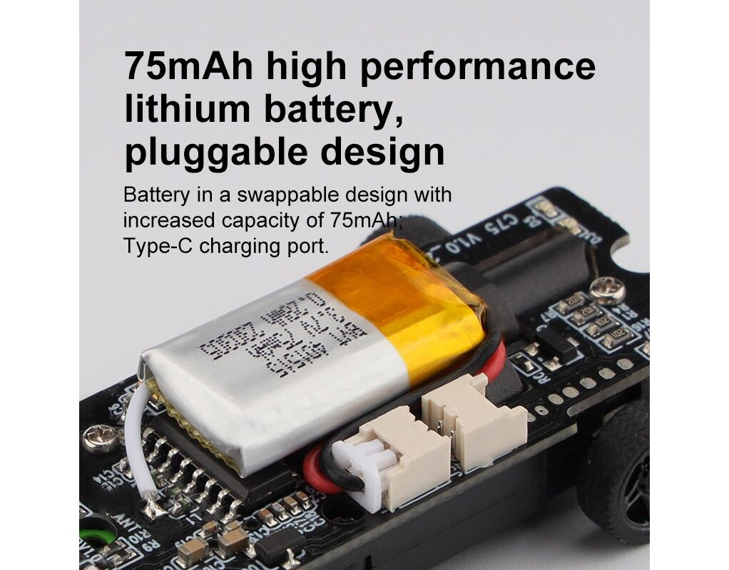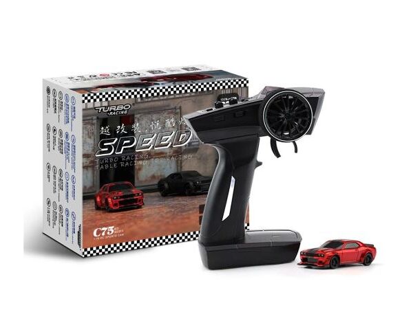 Der fest verbaute 75mAh Akku sorg für eine lange Fahrzeit und kann über den integrierten C-Stecker ganz einfach und bequem über eine Power Bank, einen Laptop oder ein Handyladegerät wieder aufgeladen werden. Gesteuert wird das Turbo Racing Modell über eine kleine und handliche 2,4Ghz Fernsteuerung.