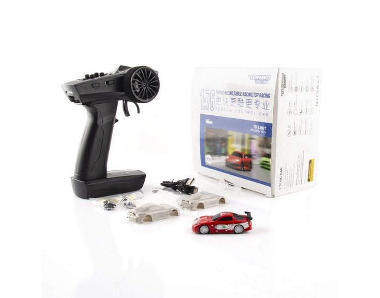 Das kleine RC Modell kann sehr präzise gesteuert werden und benötigt nur wenig Platz für spannende Rennen. Egal ob in der Mittagspause auf dem Schreibtisch, oder zuhause im Wohnzimmer oder auf dem Küchentisch – mit dem kleinen 1:76 Flitzer von Turbo Racing ist der Spaß garantiert.