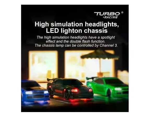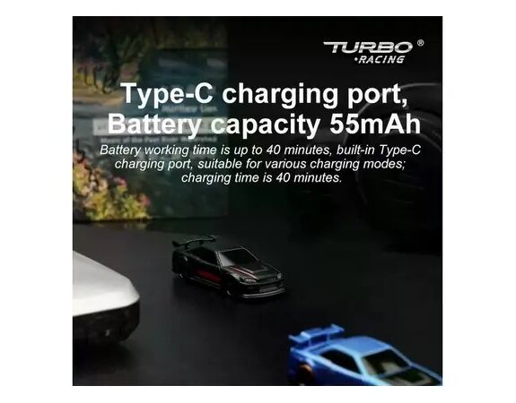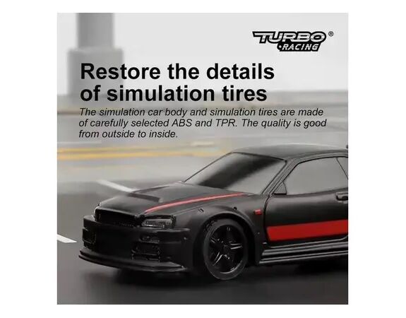 Turbo Racing 1/76 Finger Sized Proportional On-Road RC Car RTR Schwarz
