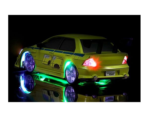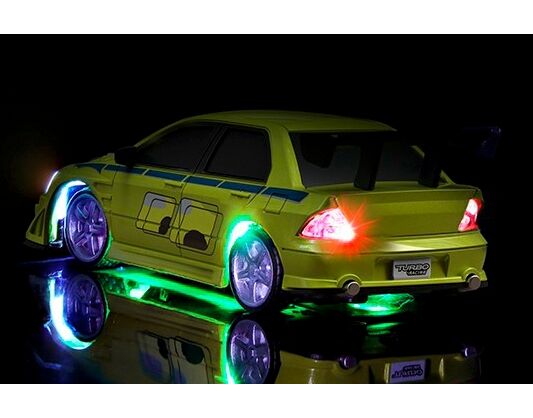 RTR-Set des 1:76 RC-Modells mit Sender. Volle Proportionalsteuerung, Hinterradantrieb, erhöhte Geschwindigkeit um 20% mit neuer Gaskurve, 55mAh Batterie mit einer Fahrzeit von bis zu 30 Minuten. Rückspiegel, modulare Front- und Heckleuchten, Neonlichter mit austauschbaren Scheiben für den Farbwechsel der Hinterräder, verstellbarer Radstand, Abfederung der Vorderräder.