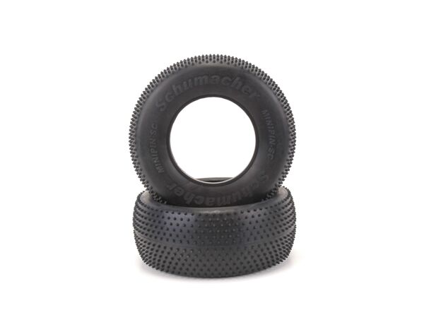 Der Schumacher Mini Pin ist der beste Reifen Kunstrasen- und Teppich-Strecken. Maximale Traktion und sehr aggressiv auf der Lenkung.Um ein Kippen des Fahrzeugs in engen Kurven zu vermeiden sollte am Vorderreifen die äußeren Pins gecuttet werden.Alternativ kann vorne die Harte Mischung (blau) verwendet werden und hinten Medium (gelb).Wähle je nach Strecken-Zustand die geeignete Gummi-Mischung bezügl. der Härte aus.