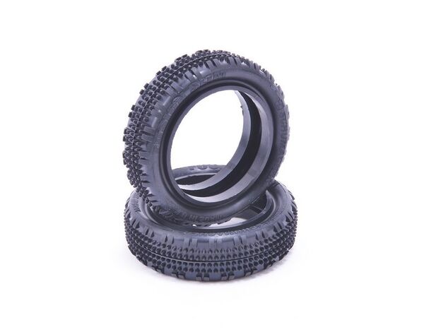 U6902 Fusion Slim - 1/10 2WD Tyres - Front - Silver - pr Introducing the Fusion Slim, 1/10th 2WD front tyre from Schumacher. The Schumacher Fusion Slim 2WD front tyre is developed from the popular Low Profile Cut Stagger. It adds centre spikes for more steering and longer life, but maintains the Stagger edges and undercut sidewall. Therefore allowing any extra steering to be controllable and not too aggressive. It is most suitable for high grip tracks, such as carpet or astro, and can knock tenths off your 2WD buggy lap times. We recommend that it is used with the U6667 slim hard foam insert. If you have been using LP Cut Staggers then your buggy may require some setup changes for more rear traction, to balance the increased grip from the front tyres. Available in; Yellow compound – fastest on carpet and dry astro tracks. Blue compound – harder and longer life. Silver compound – Soft and great on wet astro and some dirt tracks.