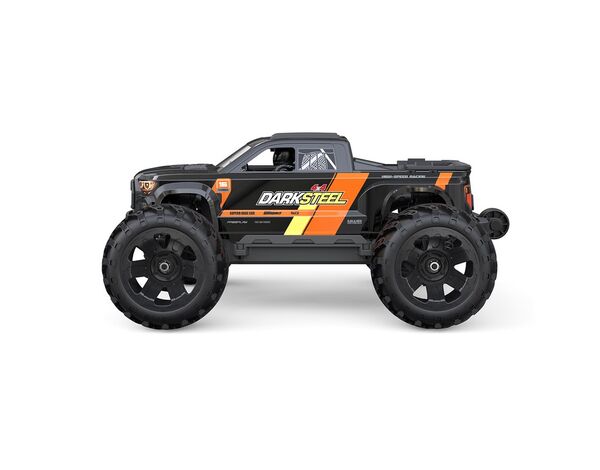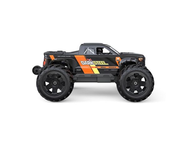 Fertig montierter 1/16 Brushless-Monstertruck (RTR) mit 2845-Motor, 60A-ESC, 17 g Digital-Servo, 2,4 GHz Fernsteuerung und Anleitung. Fahrakku, Senderbatterien und Ladegerät sind nicht enthalten.