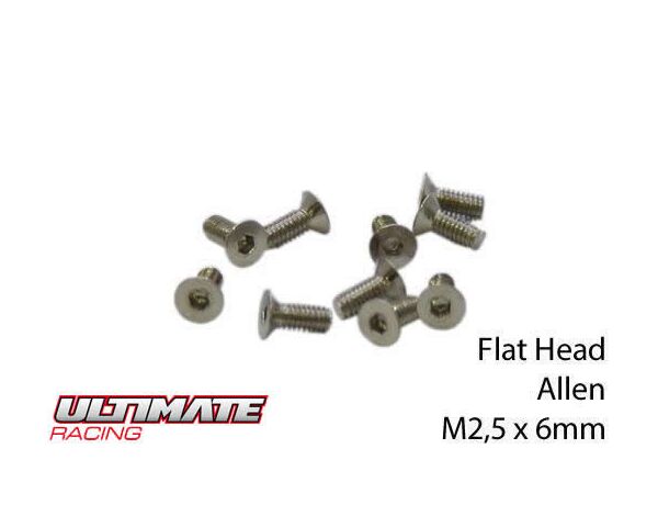 UR1612506 Ultimate Racing Schrauben - Senkkopf - Hex (Allen) - M2.5 x 6mm (10 Stk.)