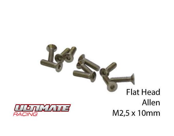 UR1612510 Ultimate Racing Schrauben - Senkkopf - Hex (Allen) - M2.5 x 10mm (10 Stk.)