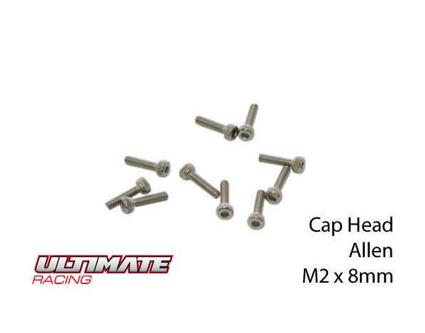 UR163208 Ultimate Racing Schrauben - Zylinderkopf - Hex (Allen) - M2 x 8mm (10 Stk.)