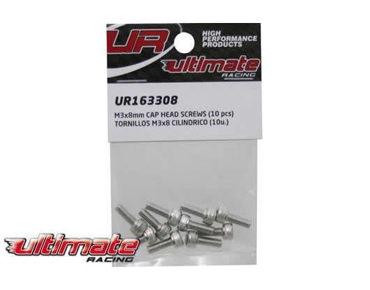 UR163308 Ultimate Racing Schrauben - Zylinderkopf - Hex (Allen) - M3 x 8mm (10 Stk.)
