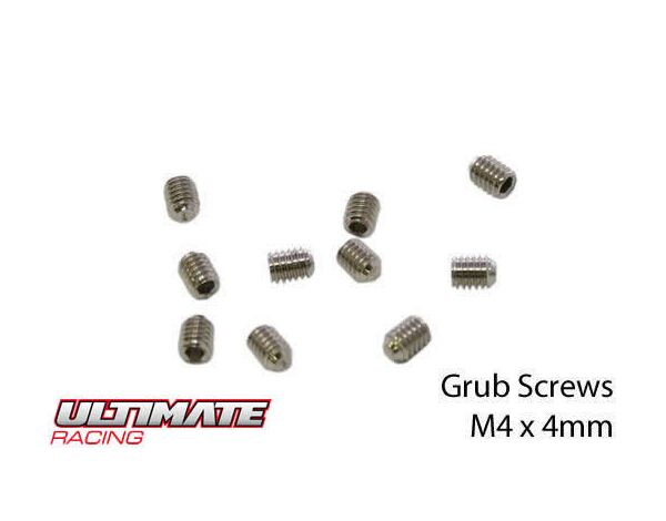 UR164404 Ultimate Racing Madenschrauben - M4 x 4mm (10 Stk.)