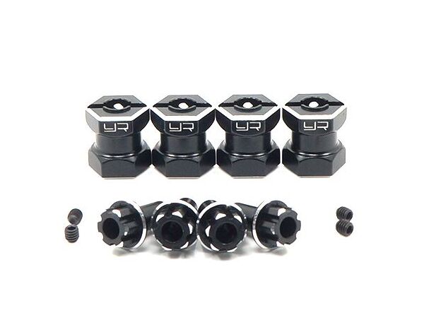 WA-023BK Yeah Racing Aluminum Hex Adaptor 15mm Offset For 12mm Hex Wheels Black 4pcs