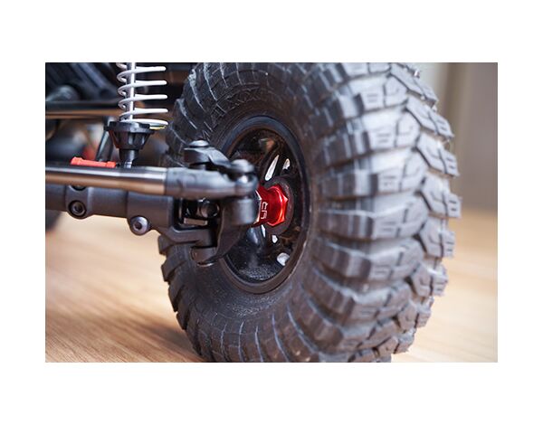 These offset hex adaptors allow you to drastically change the track width of your crawler. By increasing the trackwidth, the stability of your truck or rig will be increased as it will prevent it from toppling over on inclined climb spots! By increasing the trackwidth, your chassis flex is also increased due to a leverage effect of being able to put more force on the outter wheel which translates to more grip during climbs! Note: This will fit wheels with a center hole of at least 5mm.