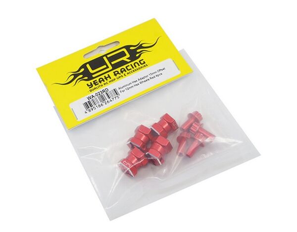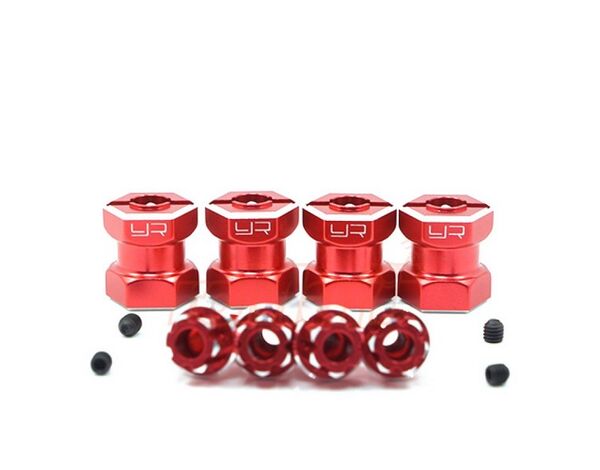 WA-023RD Yeah Racing Aluminum Hex Adaptor 15mm Offset For 12mm Hex Wheels Red 4pcs