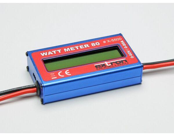 Power Watts 80A - Dieses kleine Wattmeter mißt Ströme bis 80A und wird einfach zwischen Stromquelle (Akku) und Verbraucher (Motor/Regler) geschleift.