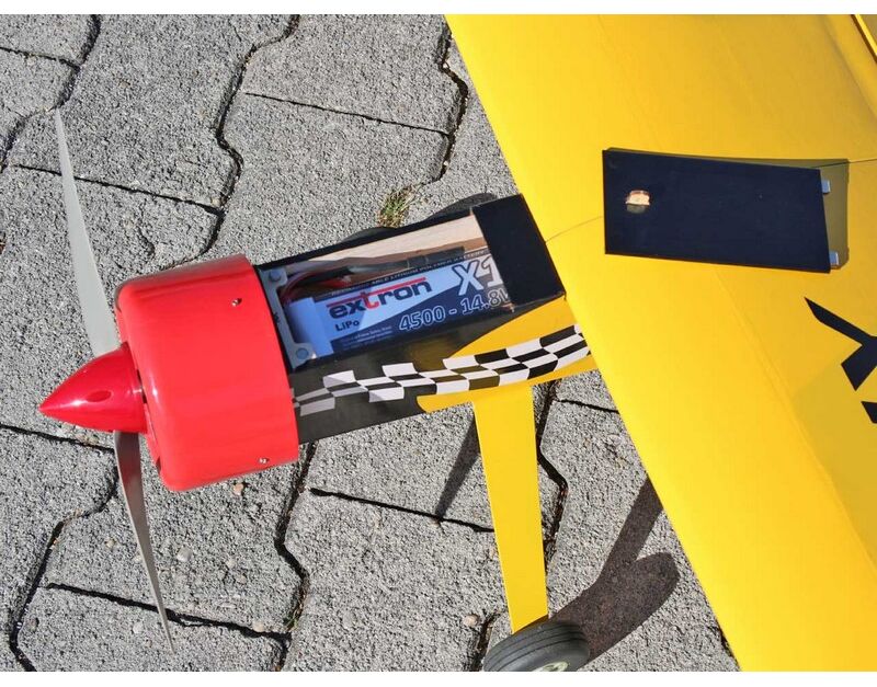Wenn Sie das Modell mit einem 4S (14,8V) Akku fliegen möchten, wählen Sie bitte den Akku Extron X1, X6658 und den Regler PULSAR A-50, C6130