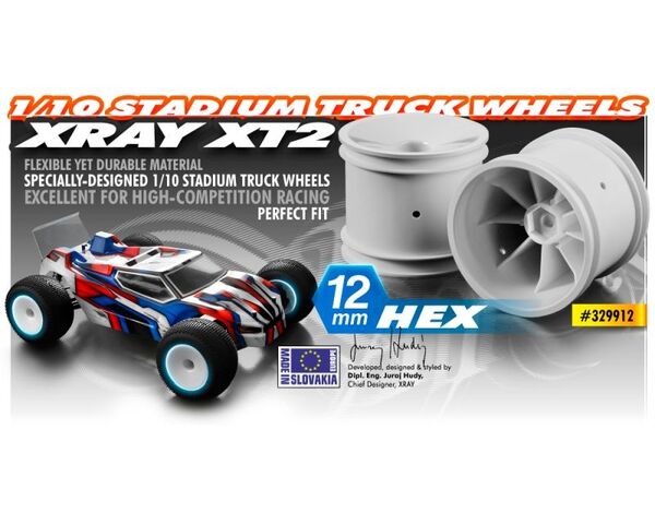 329912 XRAY XT2 Felge AERODISK mit 12MM Sechskannt - weiss (2) XT2 Vorne Hinten Front Rear 2.2" Truck
