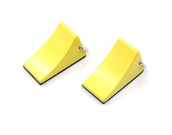 This is Yeah Racing Reifenstopper 2pcs For Tractor Truck Crawler. It is wedges of sturdy material placed closely against a RC's wheels to prevent accidental movement. These reifenstoppers (also known as wheel chocks) are realistic addition to your RC Garage.