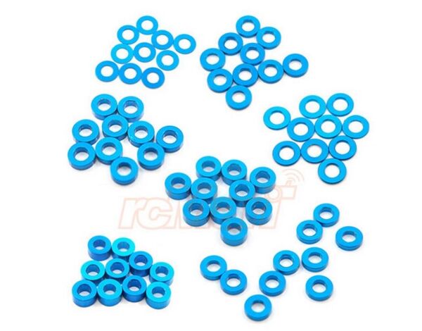 YA-0390LB Yeah Racing Aluminum M3 Flat Washer 0.25 / 0.5 / 1 / 1.5 / 2 / 2.5 / 3mm 10pcs Set Blue