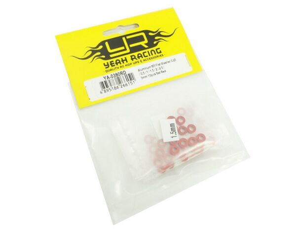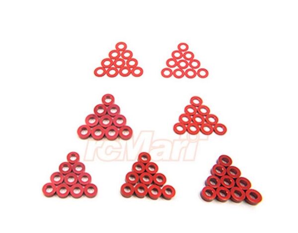 YA-0390RD Yeah Racing Aluminum M3 Flat Washer 0.25 / 0.5 / 1 / 1.5 / 2 / 2.5 / 3mm 10pcs Set Red