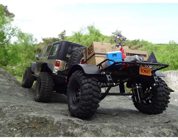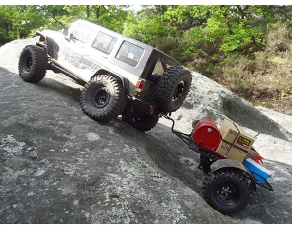 This is Yeah Racing 1/10 Leaf Spring Hitch Mount Trailer For Crawler. Perfect for towing around your rig to events or showing it off. Dual axles for extra towing capacity. Features full working steel leaf springs, hitch mount with hand made tube trailer chassis, mesh wired with wheels and tires. This Trailer is made of heavy duty metal and can be haul around real heavy loads by your crawler!