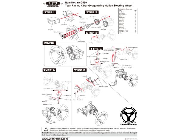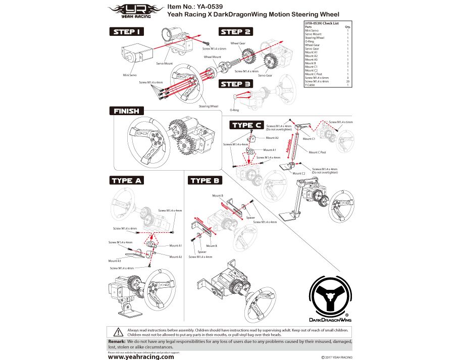 YA-0539 Yeah Racing X DarkDragonWing Motion Steering Wheel For 1:10 Touring Drift Crawler RC Car