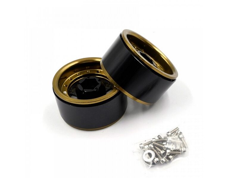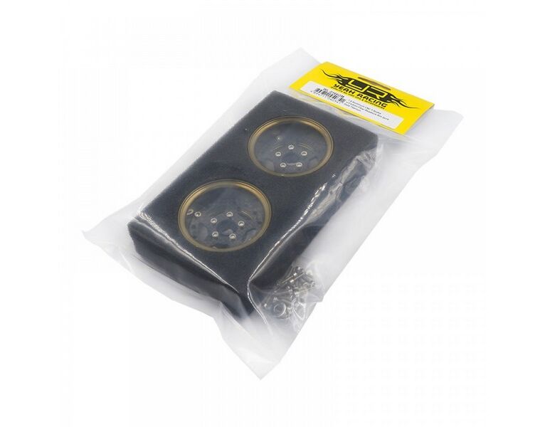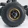 Beadlock rims with a graphite center locking ring, to keep the rotating mass lower for a more stable climb when you punch the throttle. Comes with a wheel hub, so you can take it out of the packet mount tires and go crawling!