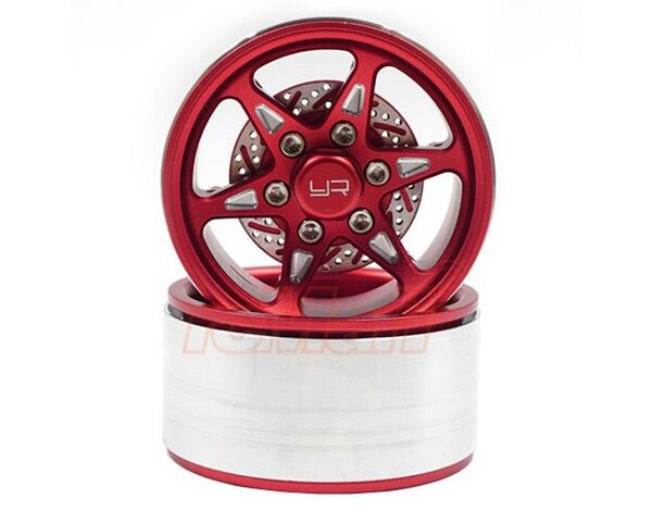 WL-0127RD Yeah Racing 1.9 Aluminum CNC BXN 6 Spoke Beadlock Wheel w/ Brake Rotor 2pcs Red 12mm
