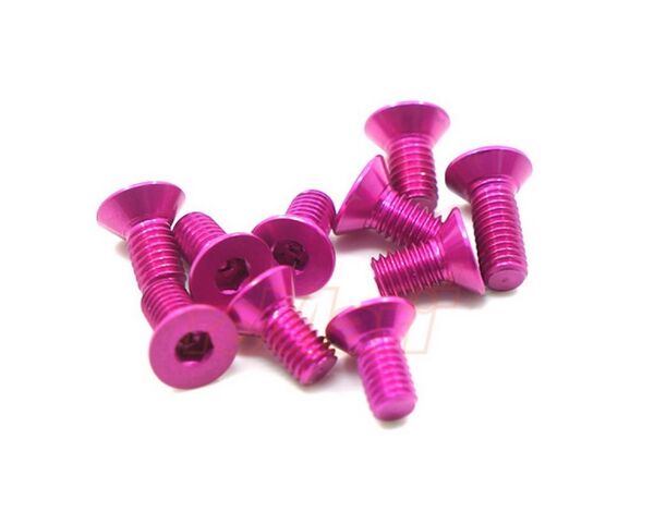 AHF-310PK Yeah Racing Aluminum 7075 3x10mm Hex Socket Flat Head Screws 10pcs Pink