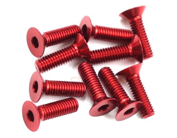 AHF-310RD Yeah Racing Aluminum 7075 3x10mm Hex Socket Flat Head Screws 10pcs Red