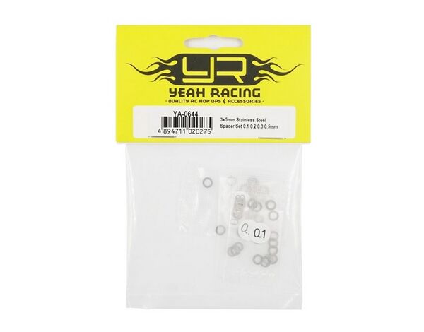 YA-0644 Yeah Racing 3x5mm Stainless Steel Spacer Set 0.1 0.2 0.3 0.5mm (30)