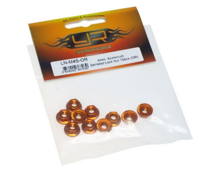 LN-M4S-OR Yeah Racing 4mm Aluminium Serrated Lock Nut 10pcs (ORANGE)