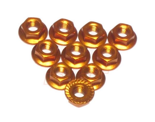 LN-M4S-OR Yeah Racing 4mm Aluminium Serrated Lock Nut 10pcs (ORANGE)