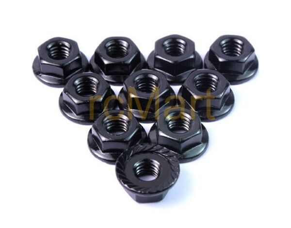 These are the 4mm Aluminium Serrated Lock Nut 10pcs (BK) For 1/10 Touring EP & GP Car