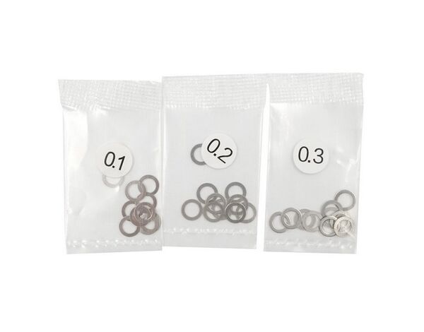 Stainless steel spacer set for fine tuning the fitment of different parts, be it steering or even diff spacing to ensure a longer lasting drivetrain! Increments in 0.1mm, which allows you to get perfect play shimmed out.