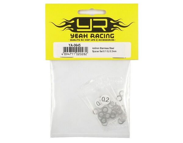 YA-0645 Yeah Racing 4x6mm Stainless Steel Spacer Set 0.1 0.2 0.3mm (30)